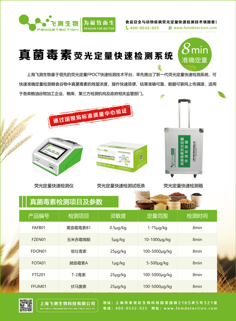 南京微測生物基于領(lǐng)先的熒光定量FPOCT技術(shù)平臺,開發(fā)了真菌毒素?zé)晒舛靠焖贆z測系統(tǒng),其熒光定量快速檢測試紙條結(jié)合了膠體金快速、酶聯(lián)免疫定量以及色譜法準(zhǔn)確的特點(diǎn),可在8min內(nèi)快速準(zhǔn)確定量的測定出真菌毒素的含量。