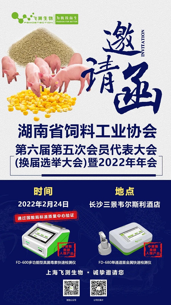 湖北省飼料工業(yè)協(xié)會(huì)全面推進(jìn)豆粕減量替代行動(dòng)專題會(huì)議 暨2022年年會(huì) 將于3月16-17日 在武漢市 中南花園飯店●南苑樓四樓會(huì)議中心 舉辦 上海飛測(cè)生物科技有限公司 誠(chéng)摯邀請(qǐng)大家前來(lái)參觀~